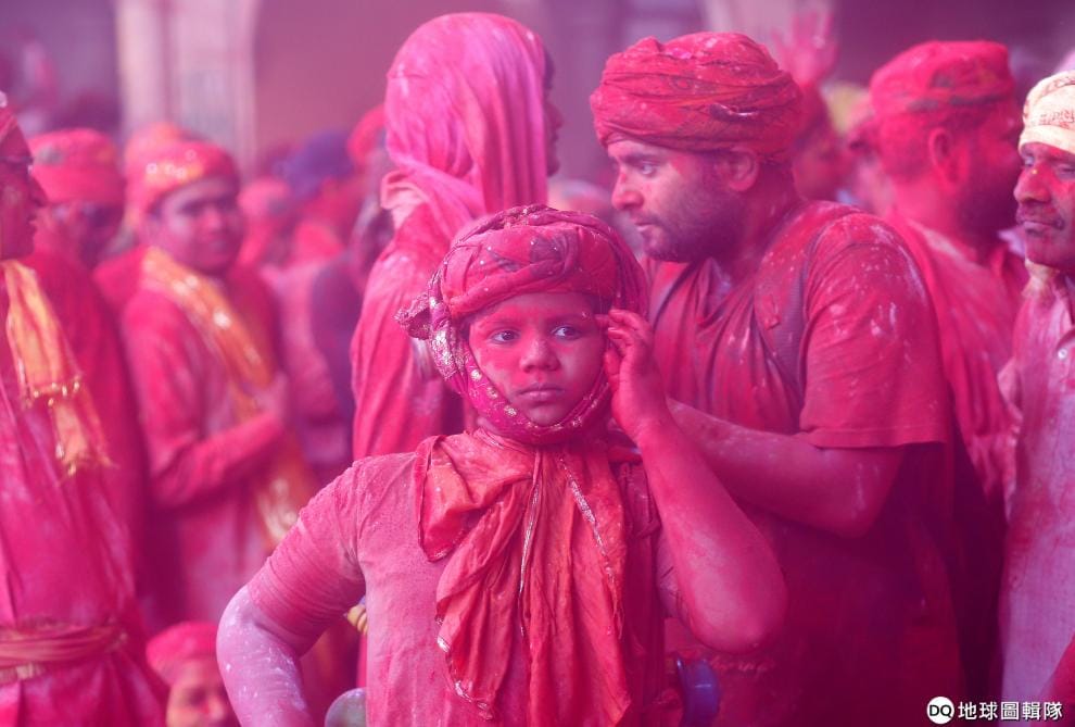 在城鎮巴爾薩納(Barsana),當地正在歡慶色彩節(Holi)的到來。
