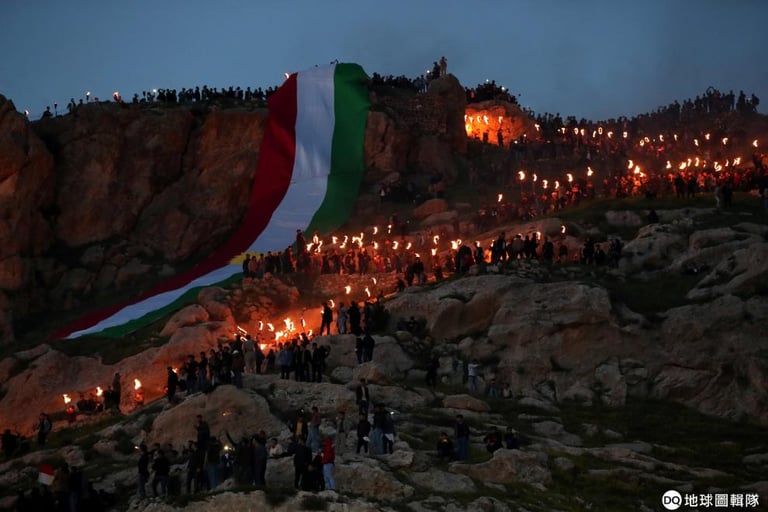 伊拉克庫德族人拿著火炬走上山頭,一同慶祝波斯新年「諾魯茲節」(Navruz)的到來。