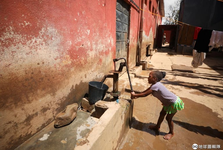 在靠近貝拉市(Beira)的布濟區(Buzi),一名小女孩正在打水。