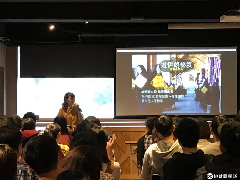 整場講座最讓人笑聲不斷的,絕對是依潔談到伊朗人非常熱情的那一面,像是走到哪都有伊朗人想「求自拍」、主動提供協助;還有伊朗人「使命必達」的性格:一旦你提出問題,他們就會想方設法、動員親朋好友幫你解決問題等等。