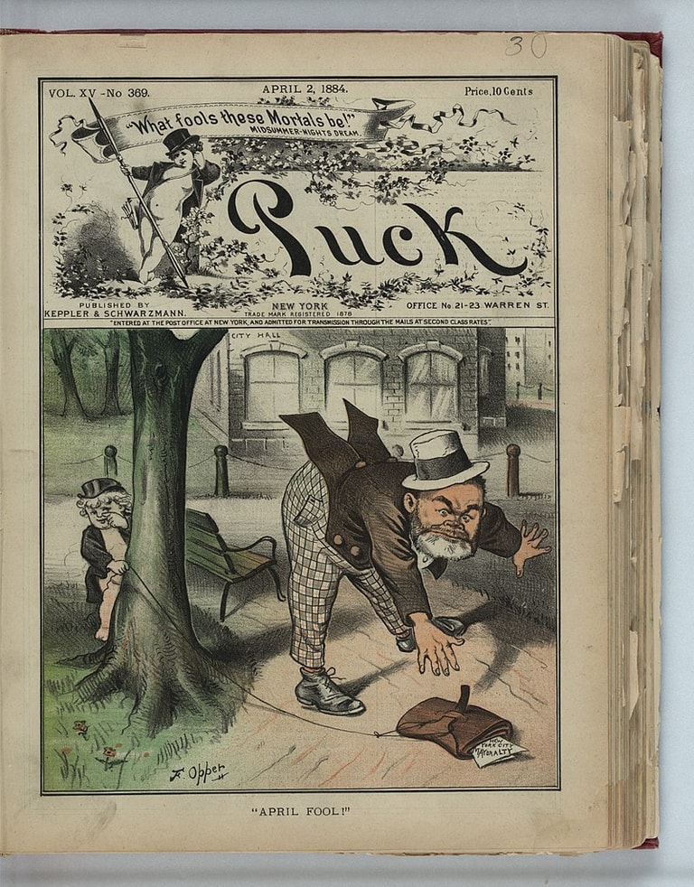 惡作劇博物館(Museum of Hoaxes)的館長波伊斯(Alex Boese)指出,大概在 19世紀時,大部分「慶祝」愚人節的方式為小孩在街頭上互開玩笑,像是在帽子裡擺石頭,再說服其他人來踢帽子;或是把一便士黏在人行道上等等,波伊斯說:「你可以在街頭上找到各種奇怪的惡作劇,畢竟街道就是他們平常的遊樂場所。」