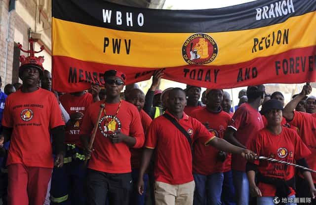 南非全國礦工工會於 8月 27日在南非約翰尼斯堡(Johannesburg)發起罷工。