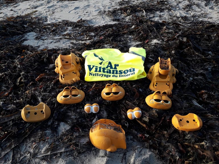 不過,在收藏家眼裡十分可愛的加菲貓電話,在當地環保團體Ar Viltansoù眼中卻是破壞海灘環境的代言人。根據法媒《France Info》的報導,光是去年,Ar Viltansoù就在海灘上撿到了超過 200個加菲貓電話殘骸。