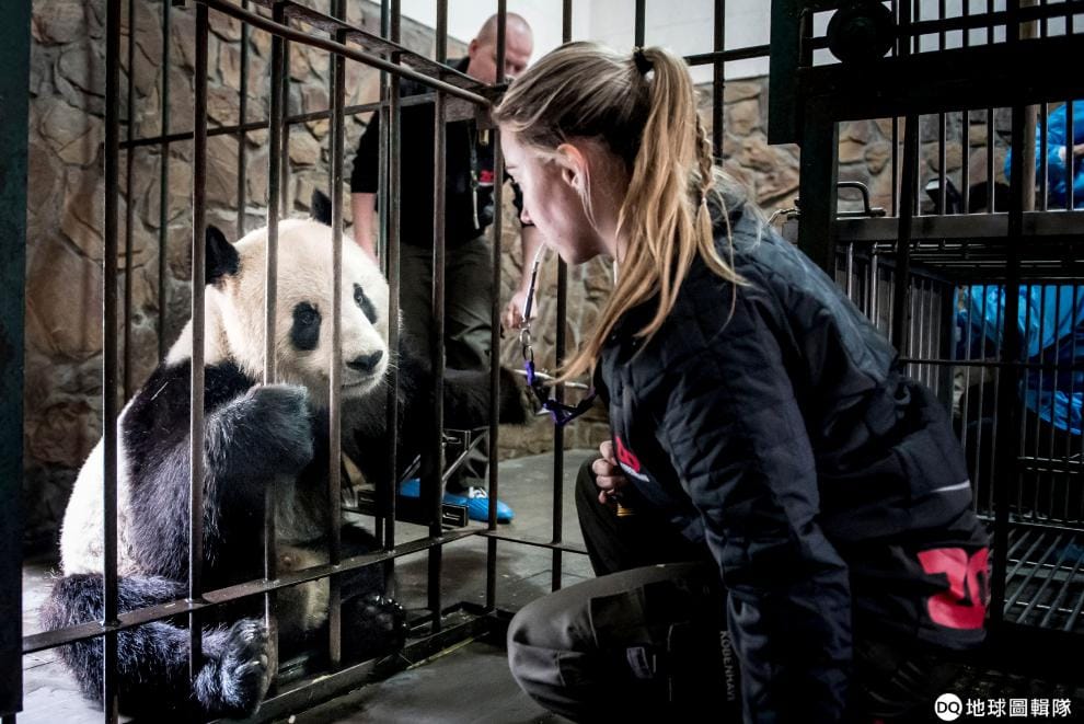 在四川省成都大貓熊繁育研究基地,來自丹麥動物園的管理員安德森(Pernille Goerup Andersen)看著眼前的大貓熊。