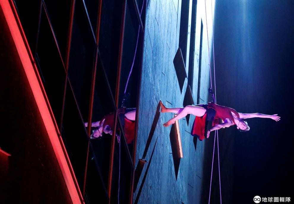 在首都布達佩斯,一名舞者在Mupa Budapest藝術表演劇場外的牆面上跳舞,這種利用高空繩降技巧飛簷走壁的舞蹈名為Bandaloop,十分考驗舞者的核心肌群與表現力。