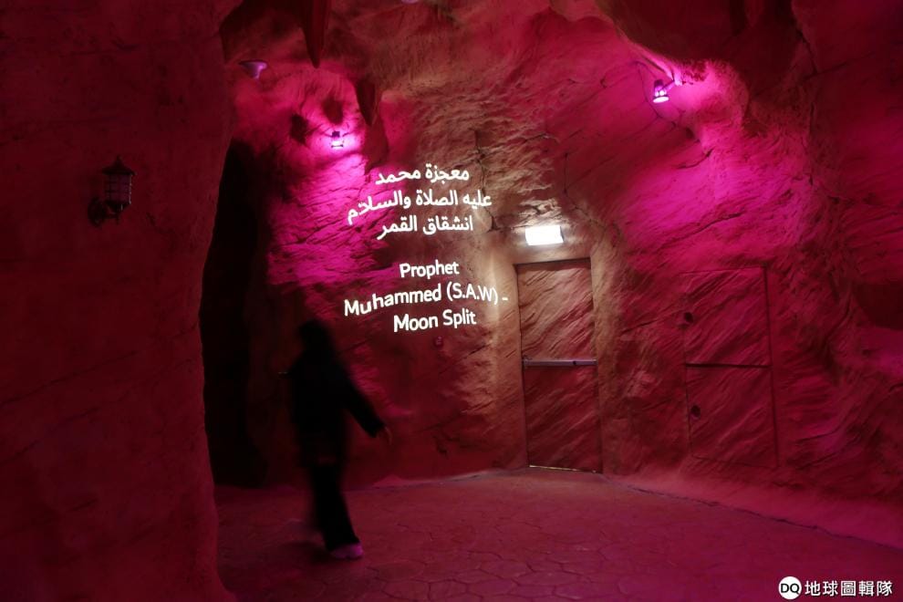 在杜拜古蘭經公園內,參觀民眾可以遊走在被稱為奇蹟洞穴的景點。