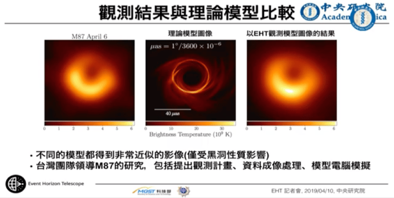 所謂事件視界就是黑洞整體的邊界,更是我們所能拍攝到最接近黑洞本身的圖像。10號這天,在美國華盛頓、台灣中研院、聖地牙哥、布魯塞爾、日本東京、中國上海等全球 6 場連線記者會中,天文學家們終於發布了第一張直接對黑洞成像的照片,是位於距離地球 5,500 萬光年、M87 星系中心質量達太陽 65 億倍的超大質量黑洞。