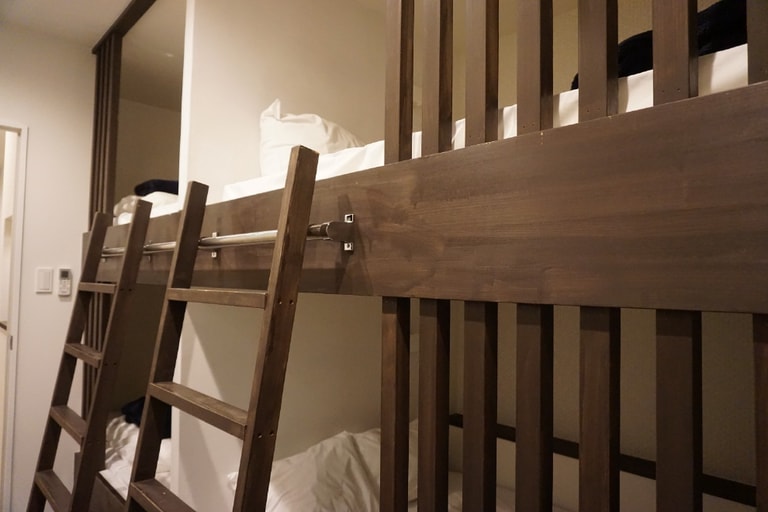 SEKAI HOTEL西九条除了獨棟的家庭式日租型長屋外,當然也有適合一兩個人出差、旅遊下榻的青年旅館風上下舖「柳」(Yanagi)。