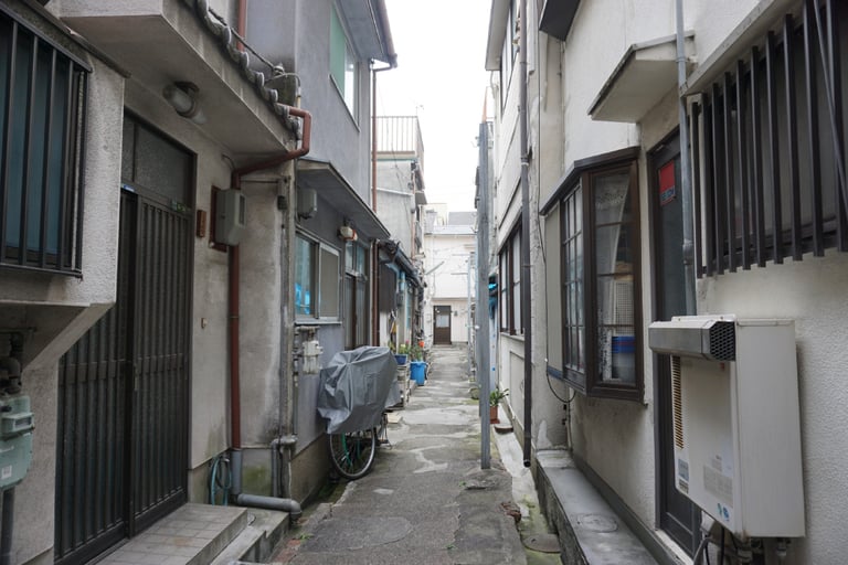 註:長屋是集合住宅的一種,表面上看起來是一家一棟的獨立建物,實則和左右鄰居共用同一堵牆,和鄰居只有「一牆之隔」。通常長屋多半為木造狹長形建物,以兩層居多。