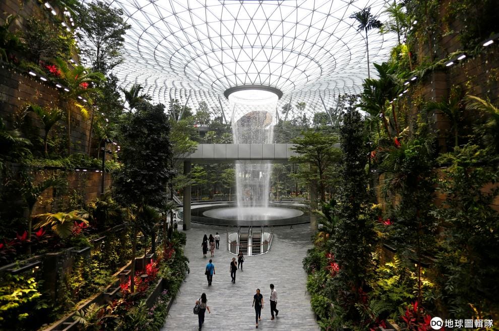 在樟宜機場內,有著全球最高的室內瀑布Rain Vortex。