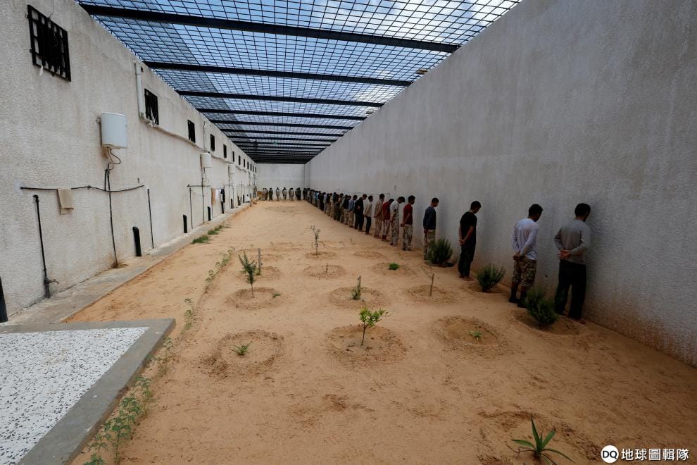 在首都的黎波里(Tripoli)南部的Ain Zara監獄內,被當局逮到的反政府軍全數面壁,這一幕也被鏡頭記錄了下來。
