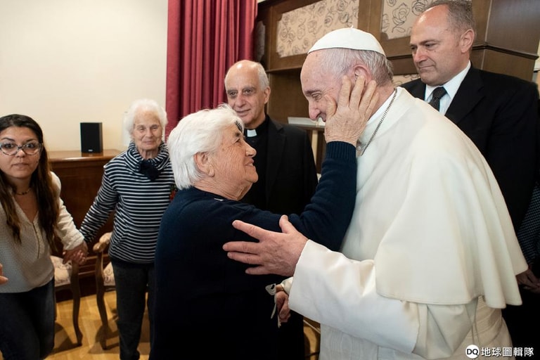 12號這天,羅馬天主教宗方濟各(Pope Francis)來到住著阿茲海默症(Alzheimer's disease)患者的Emanuele村,和裡頭的居民開心互動。