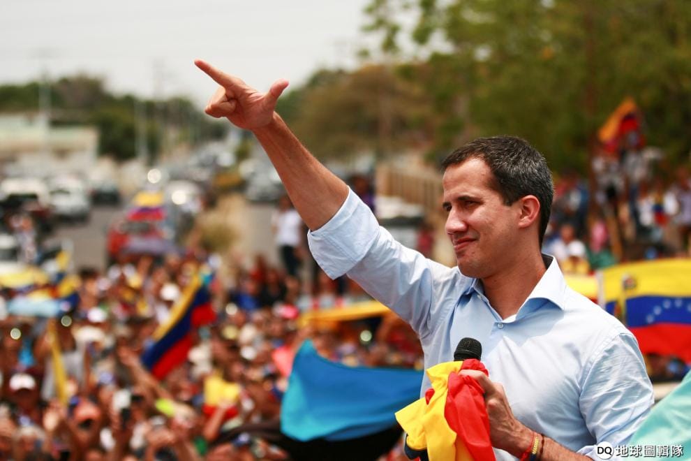 在西北部的卡維馬斯市(Cabimas),委內瑞拉臨時總統蓋多(Juan Guaido)正在參加支持者的造勢大會。
