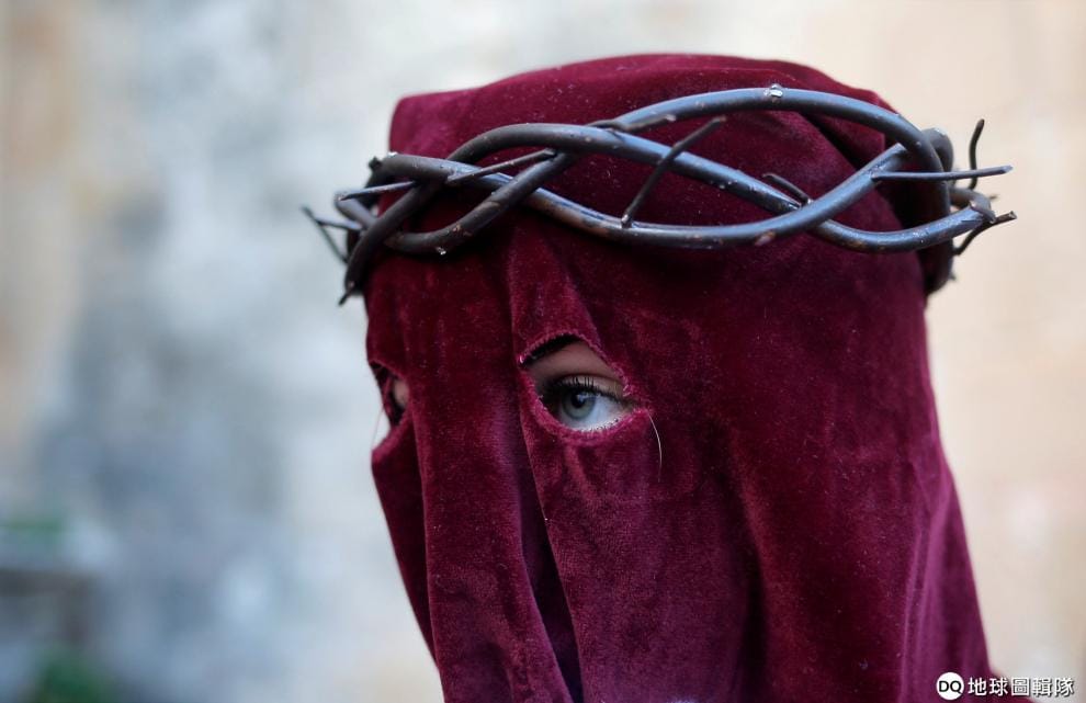 在安達魯西亞自治區的山城隆達(Ronda),一名虔誠的天主教徒頭戴荊棘頭冠,準備參加聖周(Holy Week)遊行。聖周又稱為受難周(Passion Week),在天主教傳統中是復活節的前一周,用來紀念耶穌受難。