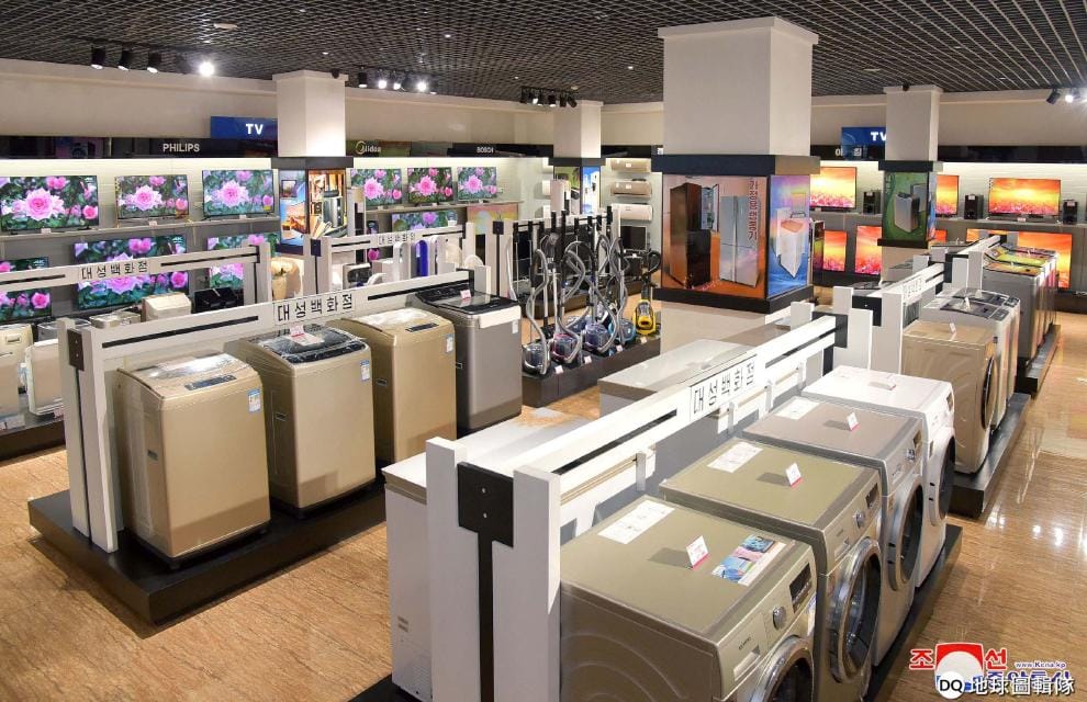 在首都平壤的大成百貨公司(Daesong Department Store)內,展示著各式各樣的洗衣機、吸塵器和電視。