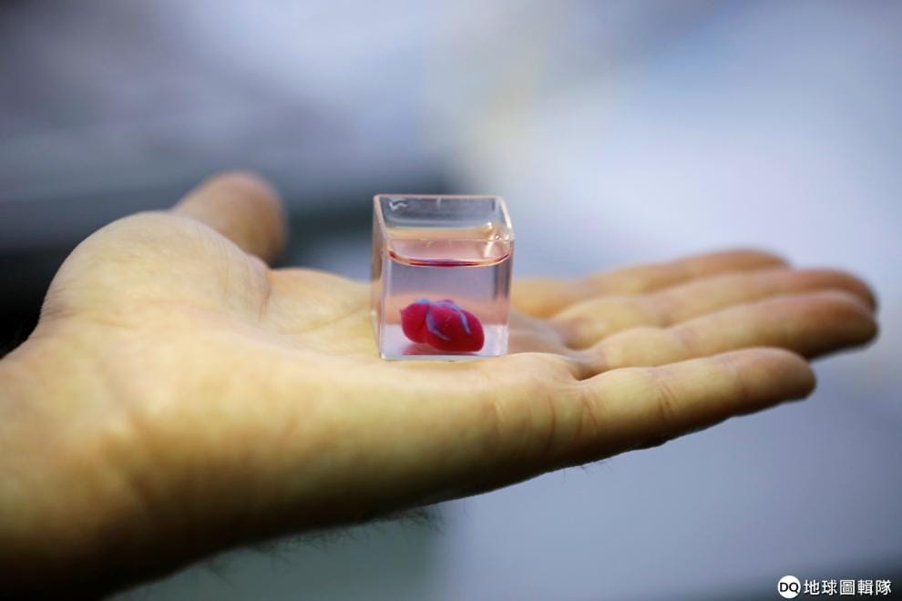 在特拉維夫大學的實驗室裡,研究人員手上放著全世界第一顆用 3D列印技術列印出的血管化設計心臟。