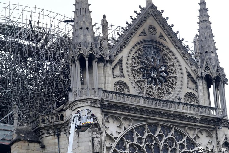 根據目前掌握的資料,有 850年歷史的巴黎聖母院主建築結構健全、兩座鐘樓和著名的玫瑰花窗都沒有受損。然而,代表哥德建築的木製尖塔確定倒塌,其下有「森林」之稱的橡木屋頂支撐結構付之一炬,所幸屋頂的拱型天花板基石完整無缺。