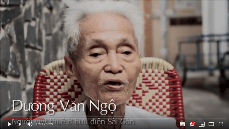 從 16歲起就在西貢中央郵局工作的楊老先生也是郵局內從未改變過的風景。在換過數個職位後,他在 60歲那年成為郵政寫信員,從這個職業蒸蒸日上的時代寫到幾乎被完全取代的現在。與他同期擔任郵政寫信員的其他兩名同事都離世了,而他也從辦公室移到了大廳的某張長桌上。