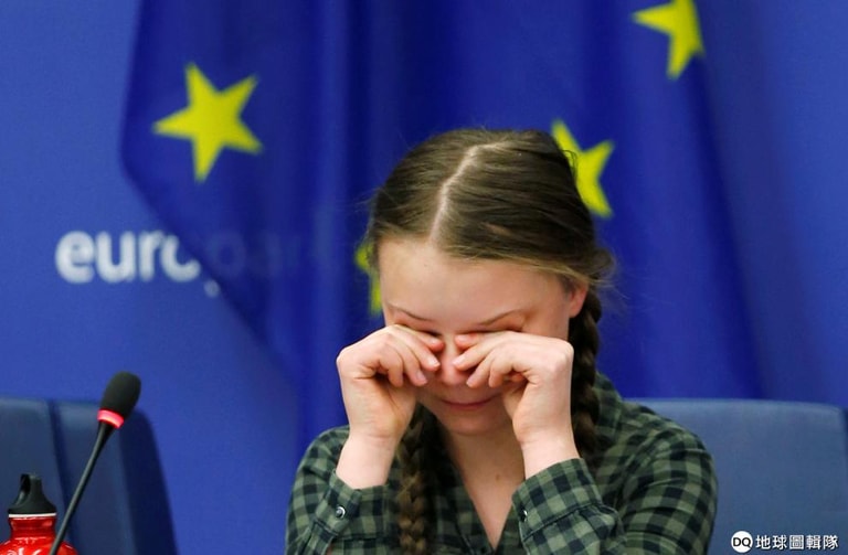 在史特拉斯堡(Strasbourg)召開的歐洲議會環境委員會上,瑞典少女環保鬥士桑柏格(Greta Thunberg)為近在眼前卻備受忽視的氣候變遷落淚。