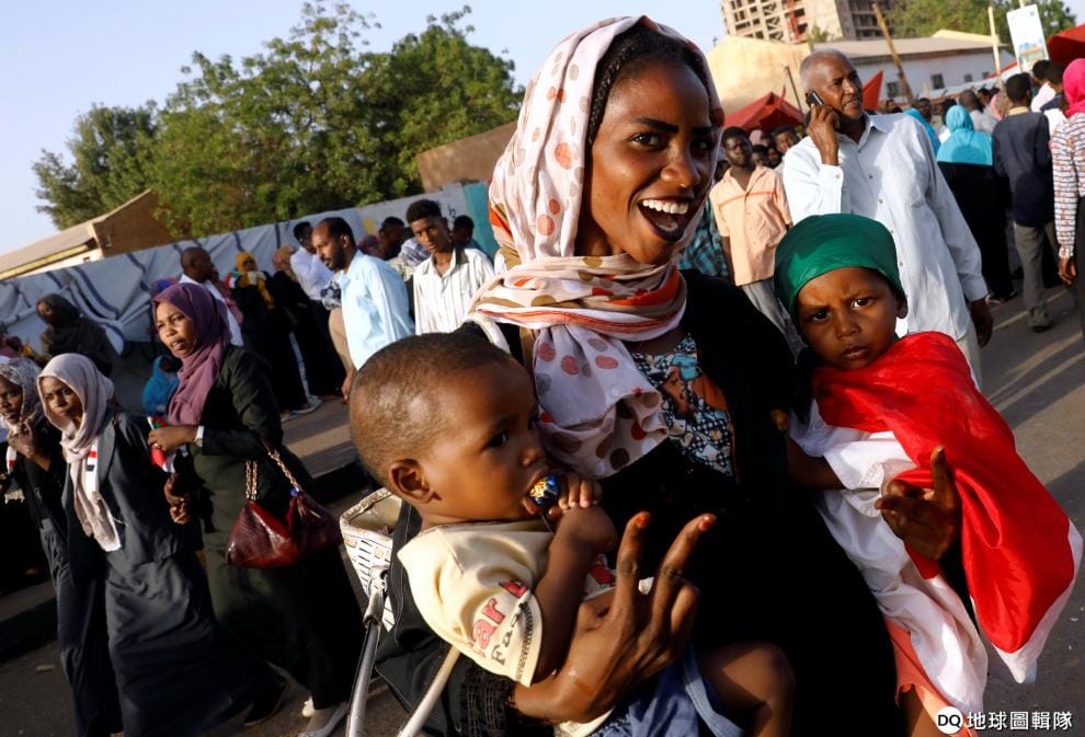 在首都喀土木(Khartoum)的國防部前,一名母親抱著他的孩子比出勝利手勢,表達自己希望政治改革的心聲。近日,蘇丹前總統巴席爾(Omar Al-Bashir)不敵民怨宣布下台。在他下台後,軍方宣布他們將以軍方領導的過渡委員會協助維護社會穩定。巴席爾從 1989年開始統治蘇丹,這幾個月來不斷遭到民眾示威抗議。原本民眾上街是為了抗議物價不斷飆高,但隨著對經濟民生的不滿演變成對執政者的憤怒,現在他們改要巴席爾下台負責。