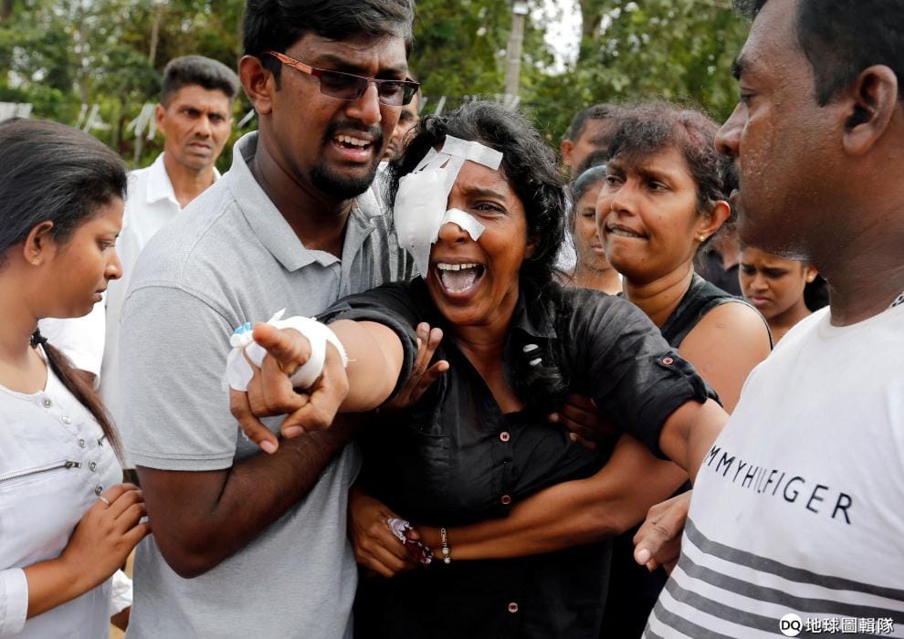在發生爆炸攻擊的內貢博(Negombo),丈夫和兩名孩子罹難的費南多(Kumari Fernando)對著親人即將下葬的墓園哭喊,這座墓園就位於案發現場聖賽巴斯提安天主教堂(St. Sebastian's Church)附近。