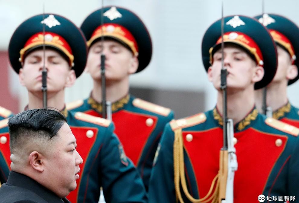 在太平洋沿岸城市海參崴(Vladivostok),北韓領導人金正恩在俄國衛兵的歡迎下前來和俄國總統普亭(Vladimir Putin)召開「普金會」。