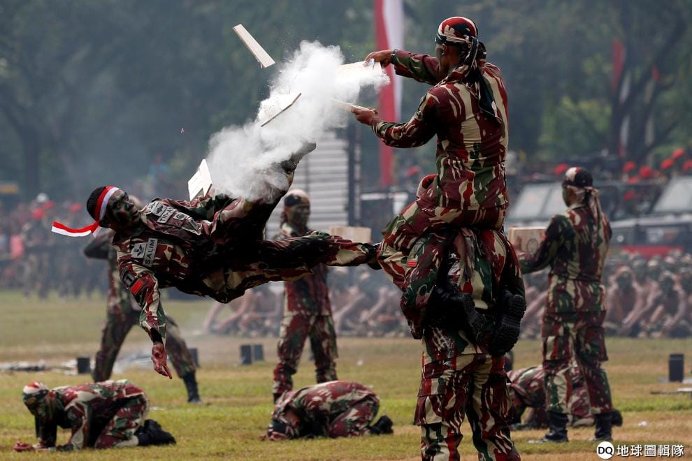 在首都雅加達,印尼特種部隊的成員用武術表演慶祝成軍 67周年。