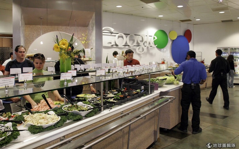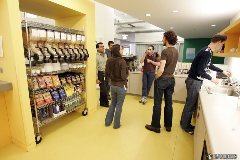 Google的創辦人之一謝爾蓋‧布林(Sergey Brin)曾說,每位Google員工和免費食物的距離不能超過200英尺(60公尺),所以在Google辦公室四處都可見到「微型廚房」(Microkitchen),他認為當人們走進公司內的用餐區時,聚在一塊的員工們可以激盪出新的產品和服務。