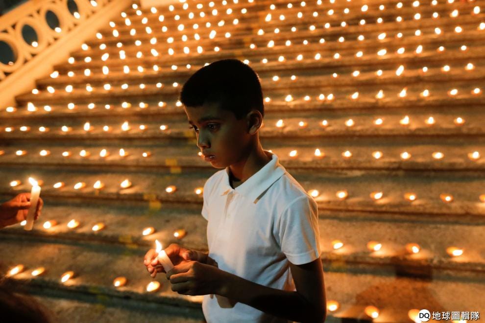 在首都可倫坡(Colombo)的湖屋(Lake House),人們在暗夜中點起蠟燭,替在復活節斯里蘭卡爆炸攻擊中罹難的受害者守夜。
