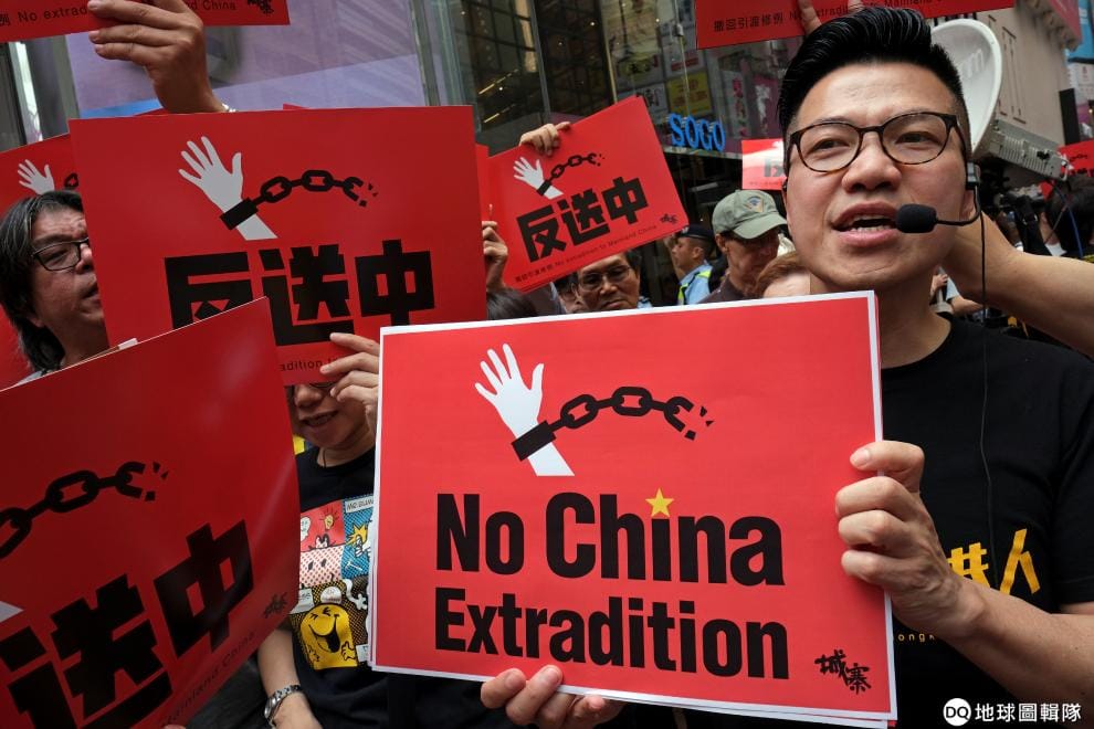 在香港街頭,反對在港人士引渡到中國受審的民眾上街抗議,希望當局可以取消正在計畫中的中國引渡法草案。