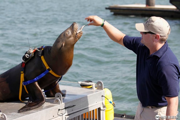 再來,有的任務由海洋生物來進行比海底無人機好得多,像是海獅有非常優異的聽力,在水底下的視力也是一級棒。美國海軍海洋哺乳動物計畫發言人貝茲納(Ed Budzyna)說:「水可能很混濁,但這對海獅來說不是問題,但對機器來說可能就有困難。」