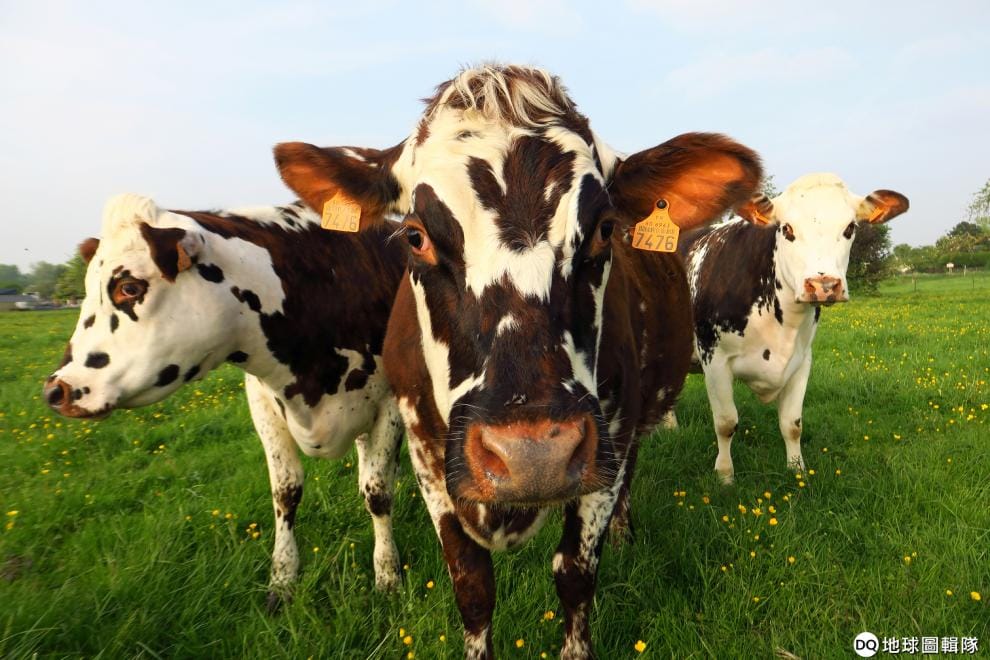 在靠近北部佩羅訥(Peronne)市的一座牧場,裡頭健康的乳牛好奇地看著鏡頭。