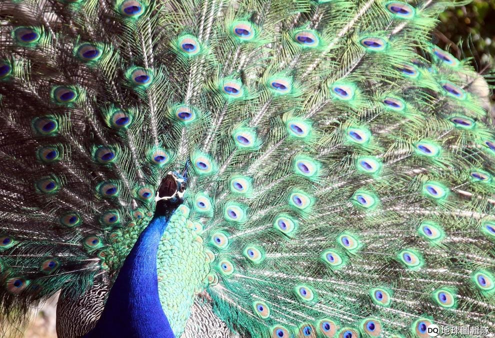 在慕尼黑的海拉布倫動物園(Hellabrunn zoo),一隻孔雀為了求偶華麗開屏。