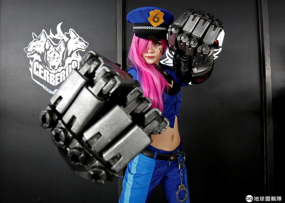 在胡志明市的GG體育館,一名Coser打扮成電玩遊戲《英雄聯盟》(League of Legends)中的女警角色。