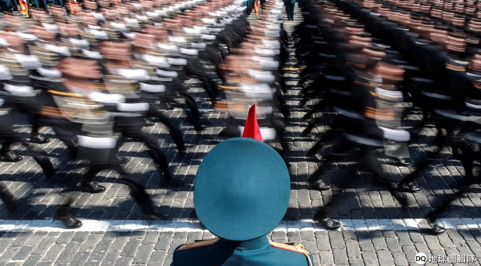 為了迎接 5月9日的勝利日(Victory Day)紀念活動,俄國軍人正在莫斯科紅場上加緊練習齊步走。