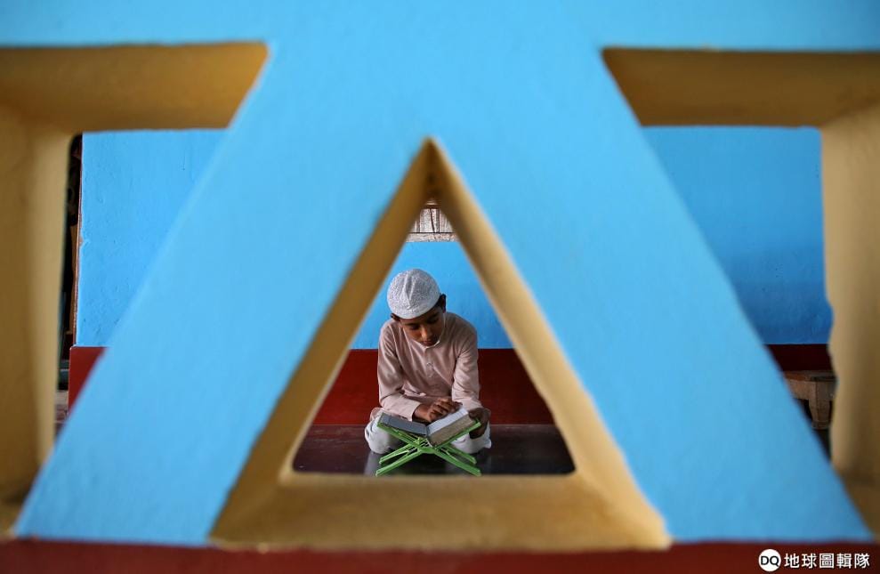 在印度西部的阿加爾塔拉(Agartala),一名穆斯林小男孩在清真寺中翻閱《可蘭經》,準備度過齋戒月(Ramadan)的第一天。