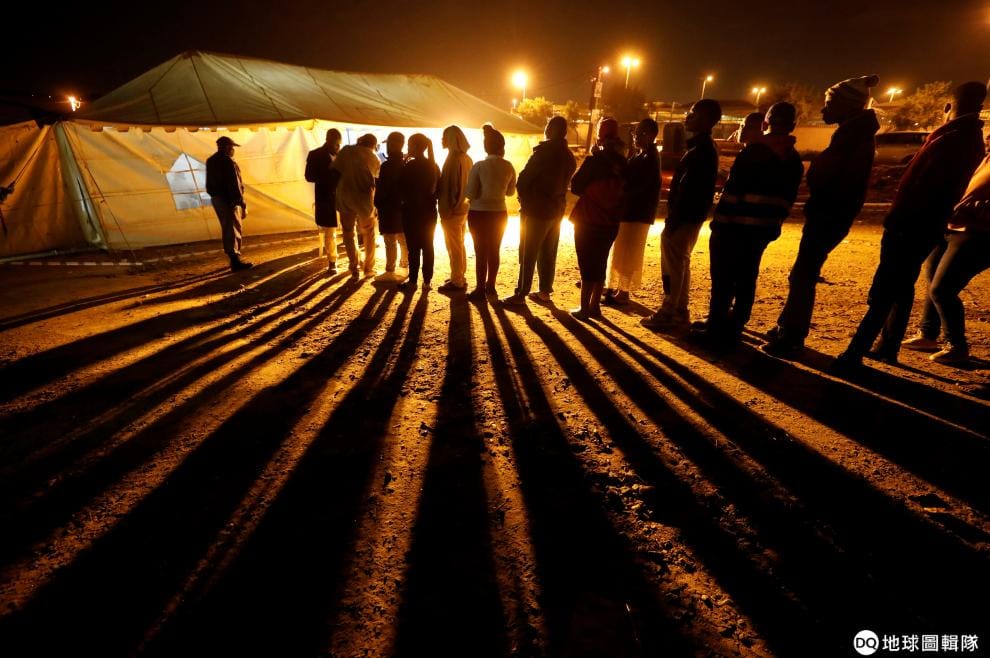 在南非第一大城約翰尼斯堡,選民們在投票所前排隊投票,準備選出 400位國會議員,外界預估這次的大選依然會由執政黨非洲民族議會(African National Congress,ANC)拿下最多席位。
