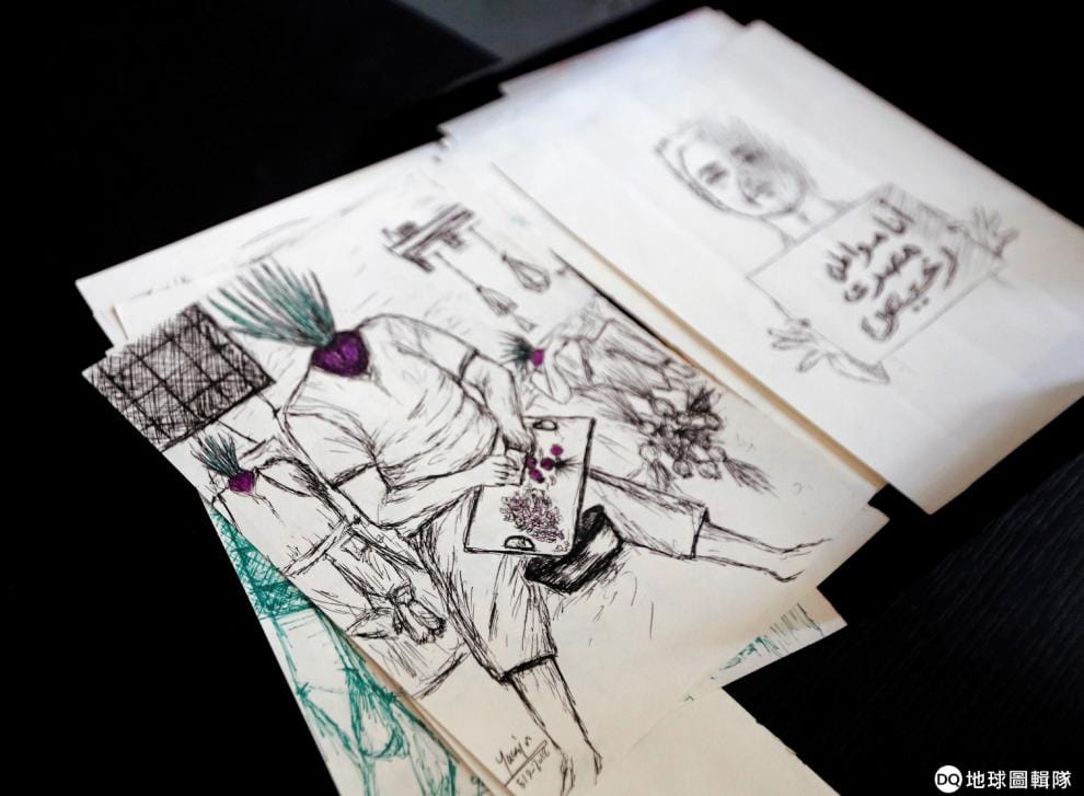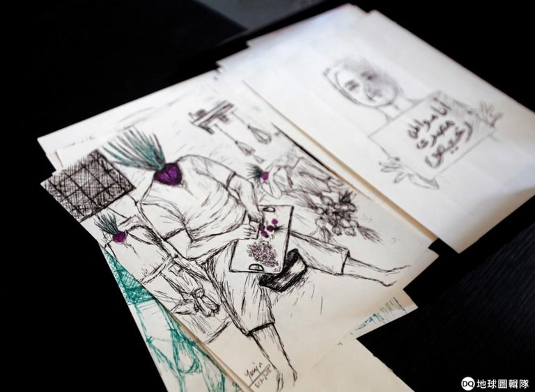 在前政治犯莫哈美德(Yassin Mohamed)位於開羅的家中,他向前來採訪的《路透社》記者秀出了自己的素描作品《囚犯與洋蔥》,還有一幅一名男子手拿寫著「我是個廉價埃及公民」告示的圖畫。