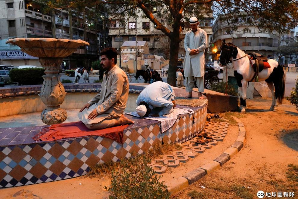 在位於南部的喀拉蚩(Karachi),時值齋戒月,穆斯林們虔誠地跪在噴泉旁禱告,太陽剛剛下山也代表著他們可以吃開齋飯(iftar)了。