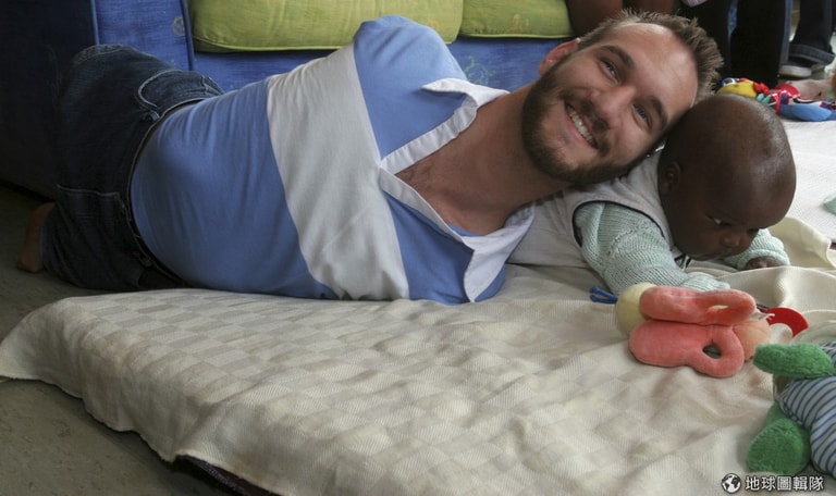 今年 30歲的胡哲患了「先天性四肢切斷症」,天生就沒有雙手和雙腳,只有在左側臀部的位置有個帶有 2根腳趾的小「腳」。樂觀的他並沒有因此而沮喪,幽默面對生命,他熱愛游泳,還會踢足球、玩高爾夫、高空跳傘。