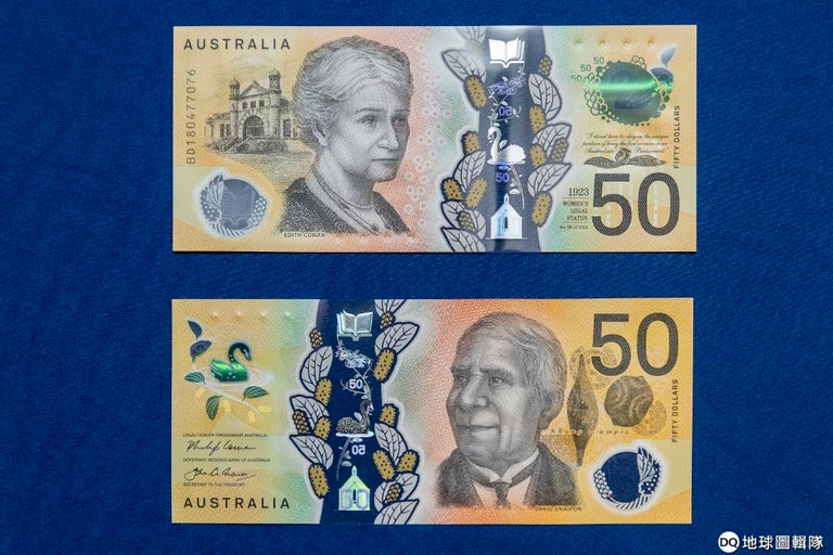 去年 10月,澳洲儲備銀行(Reserve Bank of Australia)發印了新設計的 50澳元(折台幣約 1,076元)鈔票。這張新版鈔票包含了幾項高科技的防偽設計,像是一隻展翅高飛的天鵝,以及隨著鈔票角度不同而正反變換的「50」立體影像。