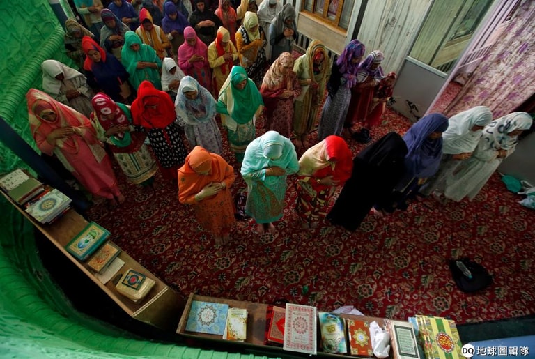時逢齋戒月期間,一群穆斯林女子正在聖壇裡祈禱著。