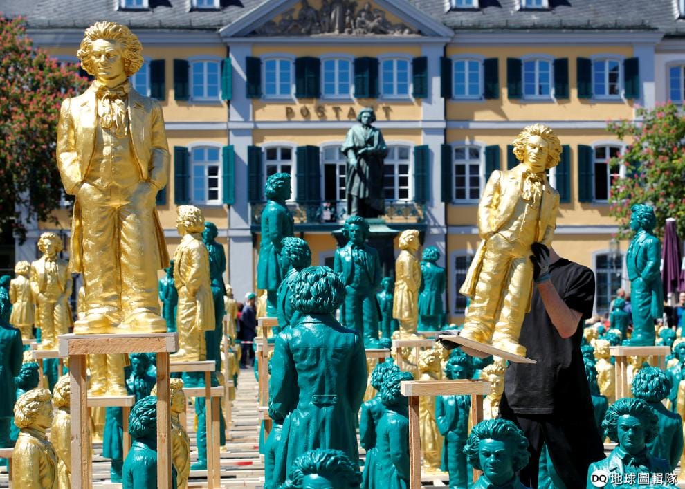 在德國的大教堂廣場(Münsterplatz),工人們正忙著處理數百尊貝多芬(Ludwig van Beethoven)的塑膠雕像,這些雕像是出自概念藝術家賀爾(Ottmar Hoerl)之手,以此慶祝這名德國作曲家的 250歲冥誕。