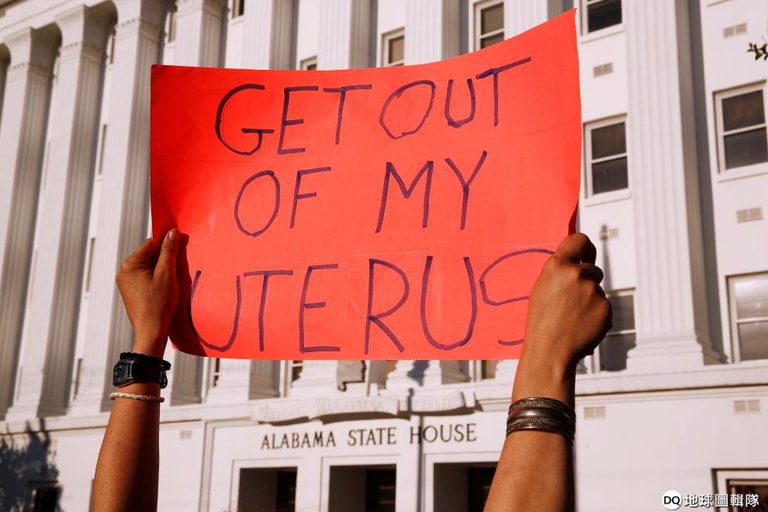 在阿拉巴馬州議會外,一名支持墮胎的示威者手上的標語寫到:「離我的子宮遠一點。」因為在 15號這天,美國阿拉巴馬州議會通過了全美最嚴格的墮胎禁令,明訂孕婦除非面臨「嚴重健康風險」、「未出生的孩子有致死性異常」,否則任何執行墮胎的醫生可能被判 10-99年不等的刑期。