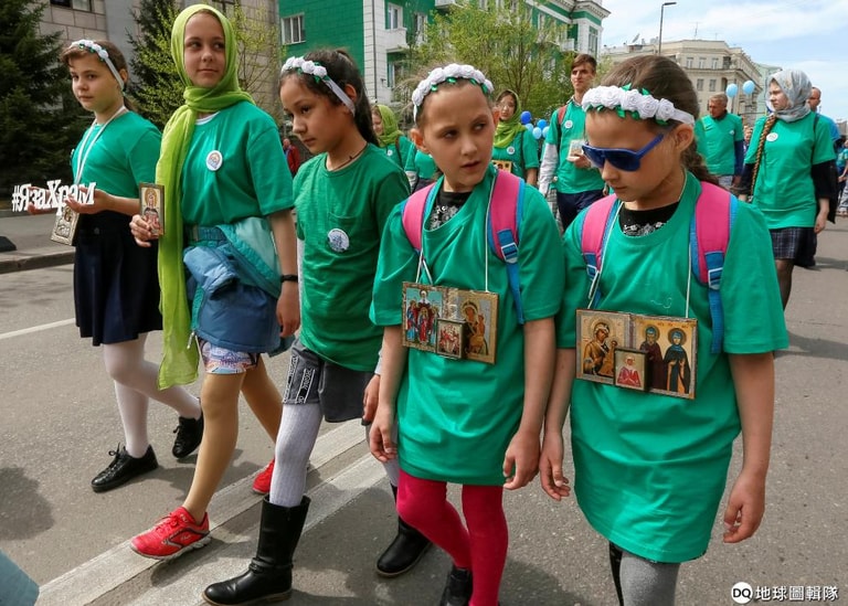 26號這天,在俄國城市克拉斯諾亞爾斯克(Krasnoyarsk),孩子們手拿東正教物品上街參加斯拉夫文化日大遊行。