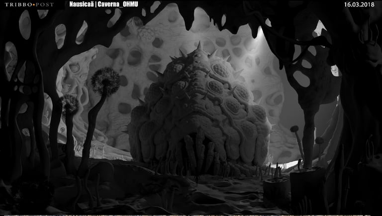 該動畫電影最經典的場景就是如異世界般的腐海森林,蟲類之首「王蟲」以及其他蟲類的奇異外表也是《風之谷》的特色所在。
