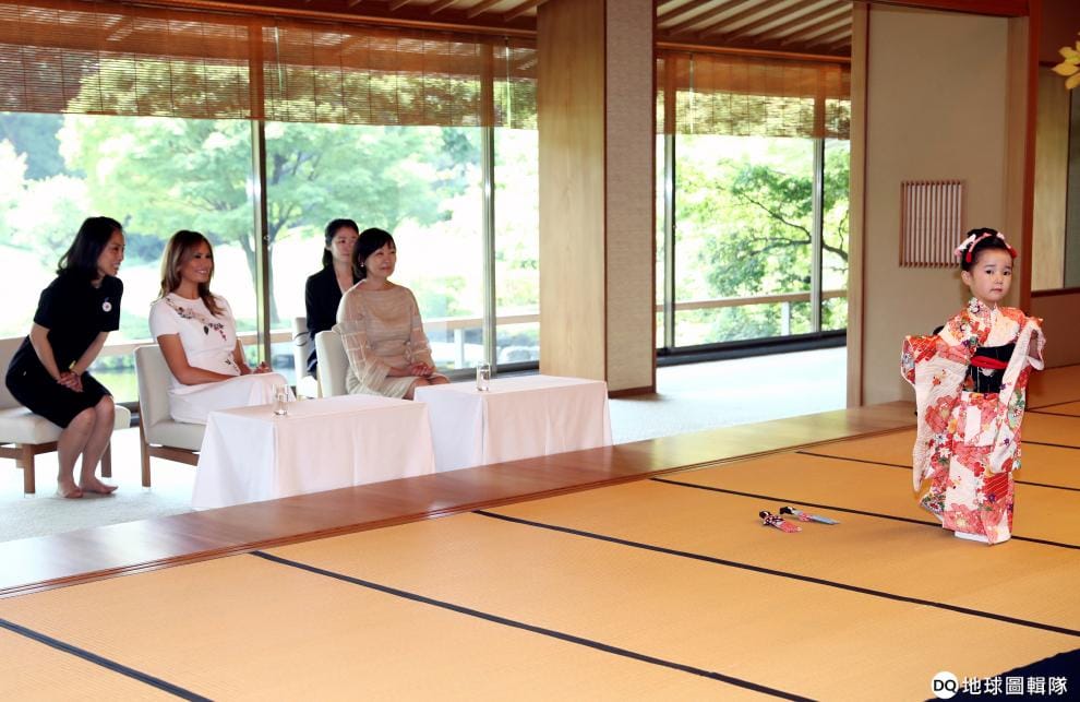 首圖故事:一名穿著日式和服的女孩在美國第一夫人與日本首相夫人前表演......