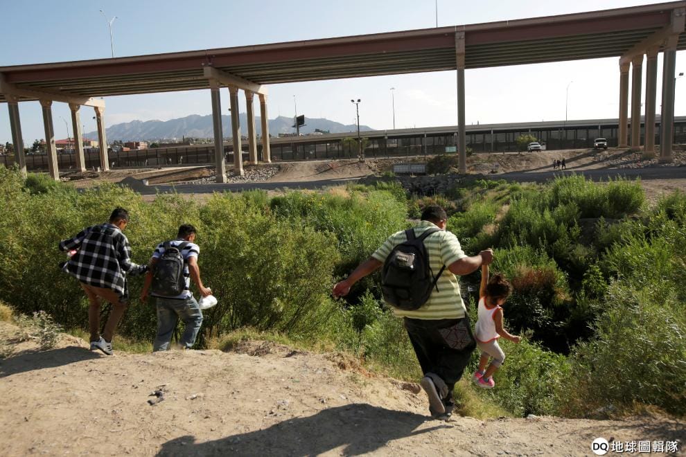 在美墨交界的布拉沃河(Rio Bravo)岸邊,移民們加快腳步想盡快進入德州艾爾帕索城(El Paso)申請庇護。