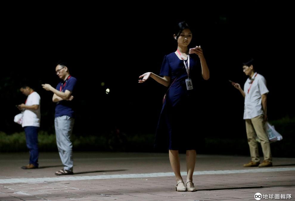 在廣東省深圳市的華為總部,一名加班完的女子一邊等公車,一邊用手機上的app學習舞蹈。