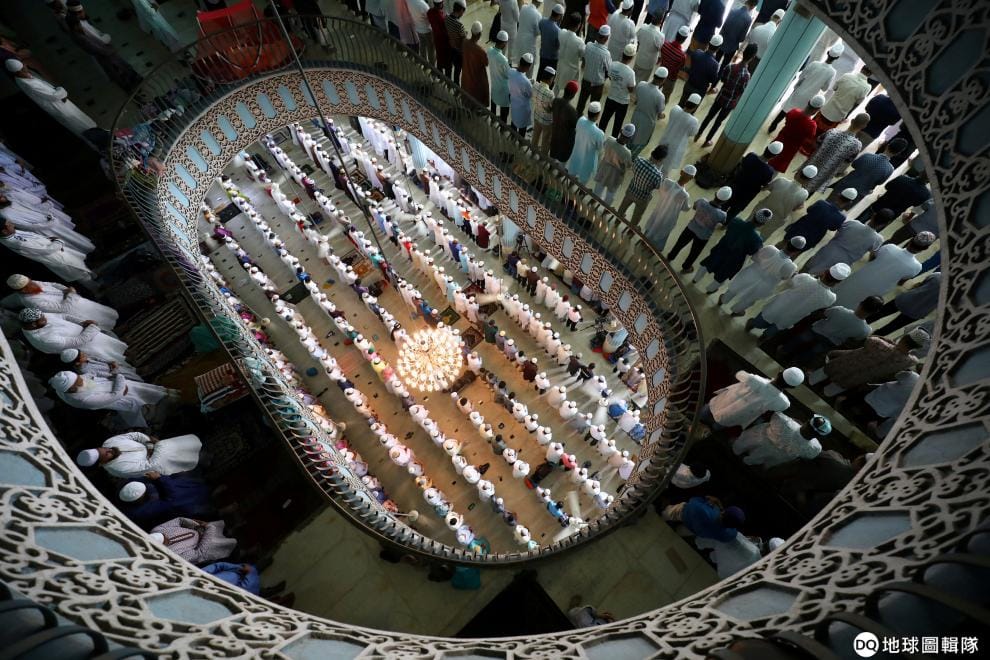 在首都達卡(Dhaka)的白圖穆卡蘭清真寺(Baitul Mukarram National Mosque),穆斯林們正在虔誠禱告。